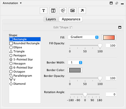 Annotations面板的Appearance选项卡中编辑注释属性。创建注释后,可以再次编辑这些属性。 - 要调整注释大小,请单击调整大小手柄之一并移动鼠标光标以调整注释大小。注释可以稍后再次调整大小。