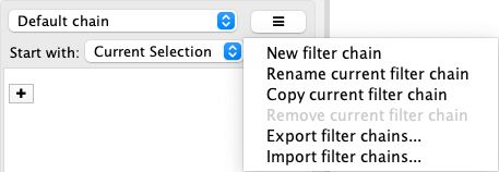 Filter选项卡为一个缩小选择范围的过滤器,其可以被组合成为一棵树。Chain选项卡为一个级联的转换器,其可以被组合为一个线性链条。