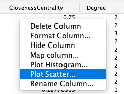 通过右键单击要作为 X 轴的数据列标题,选择 Plot Scatter... 来创建散点图。