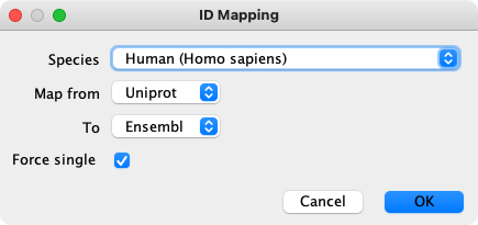 Map from中对其进行覆盖。 To为标示符映射的目标数据库。该列表按照物种过滤,并整理为最常见的选项。完整的支持目标列表见这里。- 在某些情况下可能有多个答案,