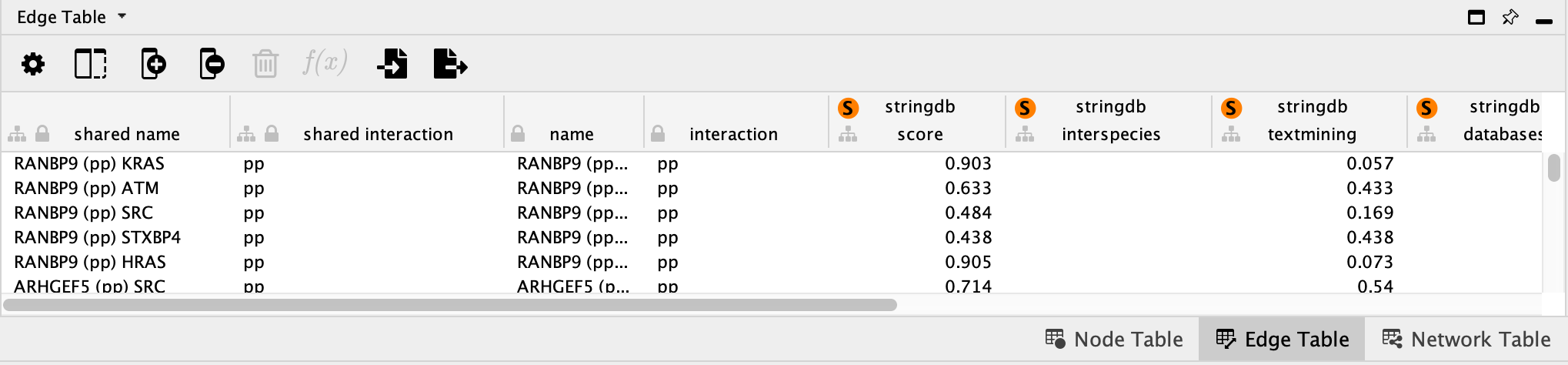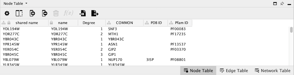 删除列。注意,删除列会将其从 Cytoscape 中删除,而不仅仅是从表格面板。要从面板中移除列而不是删除它们,只需要使用 Show Columns 按钮