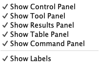View菜单下相应的选项(例如:取消选中View -> Show Results Panel将隐藏结果面板)。隐藏面板后,其选项卡将不再出现在侧栏中。为了再次显示面板,选中对应的菜单项即可。或者,你可以右键单击任意侧边栏上的空白区域来隐藏/显示面板:
