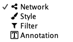 当你安装和使用应用时,这些应用可能会添加自己的标签,有时可能会导致工具栏非常混乱。为了使边栏更加整洁和易于使用,Cytoscape 允许你隐藏选项卡标签并仅显示其图标。右键单击侧边栏上的任意位置,然后取消选中上下文菜单中的