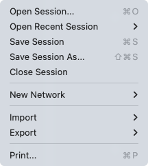 File -> Open Recent Session 将会列出最近打开的会话文件,以便快速访问。File -> Print... 可以进行打印。