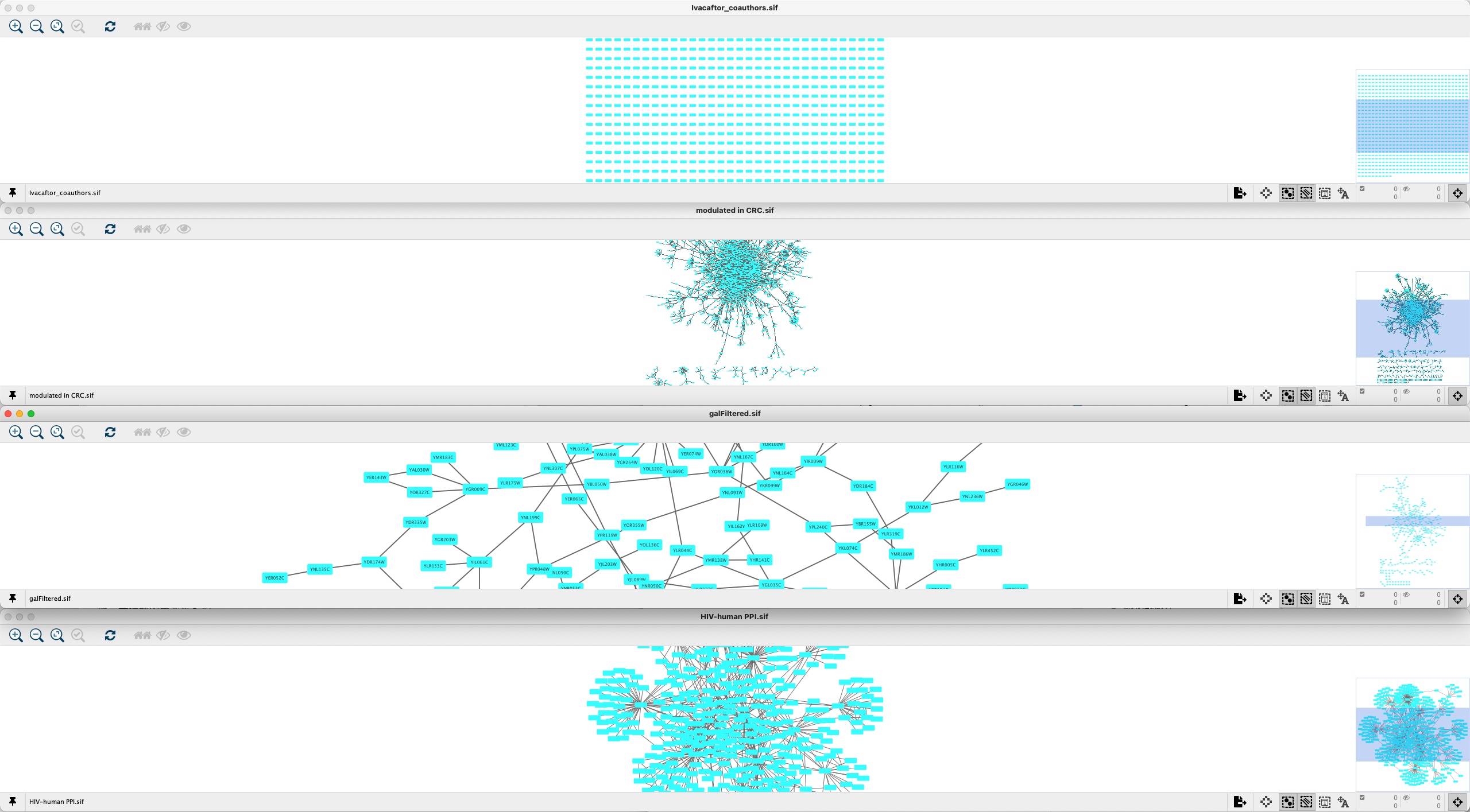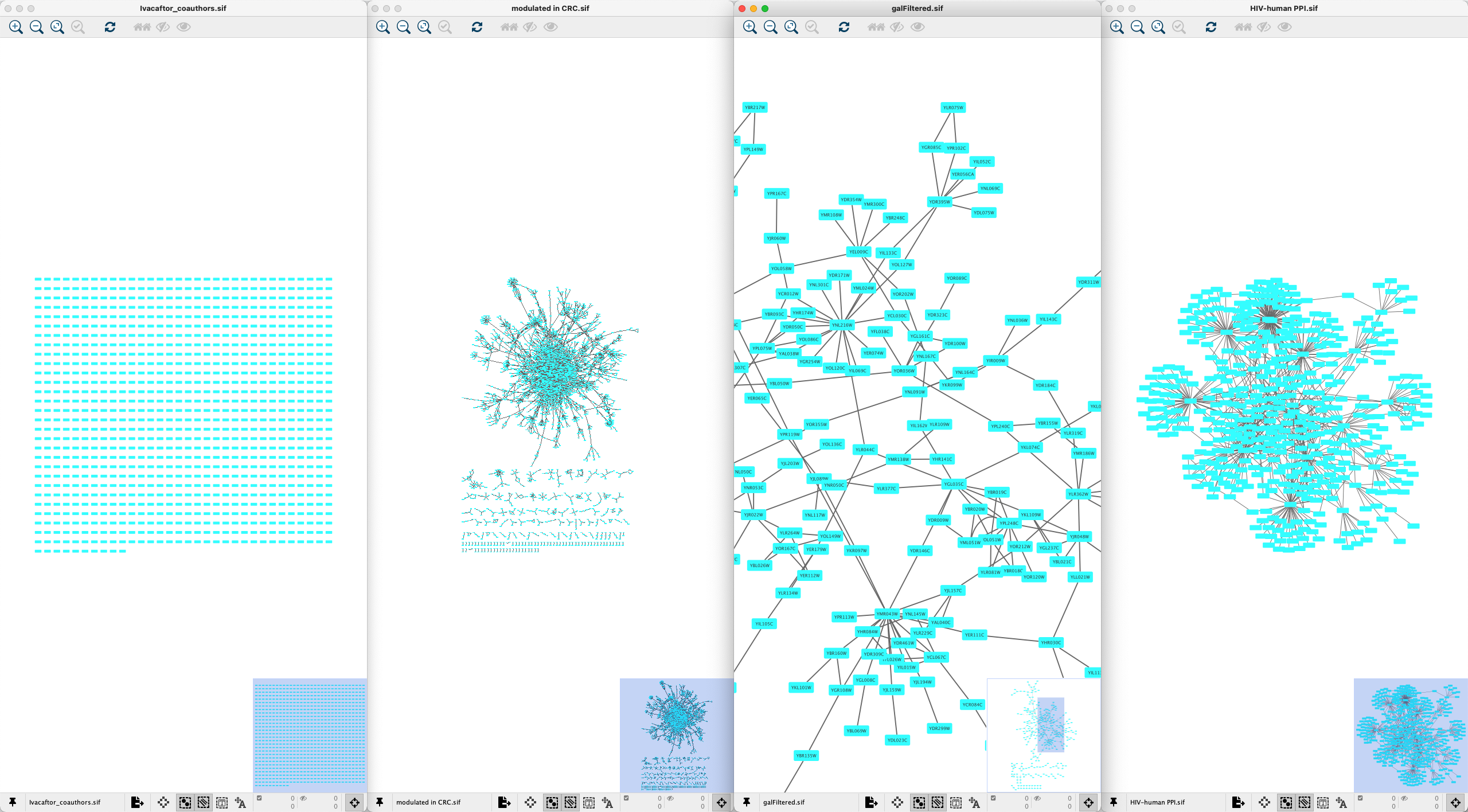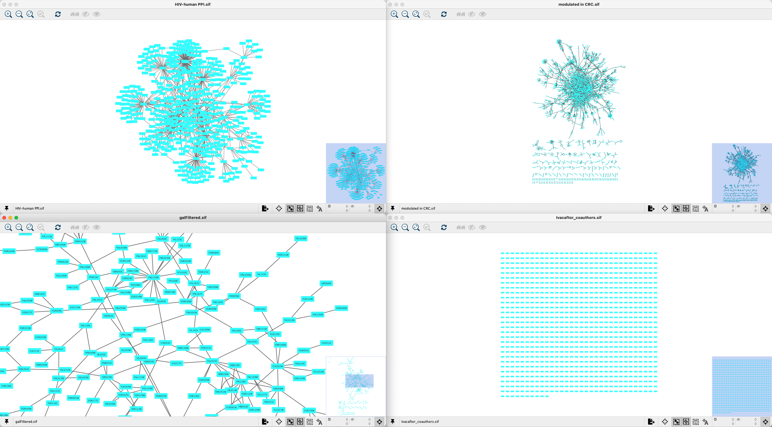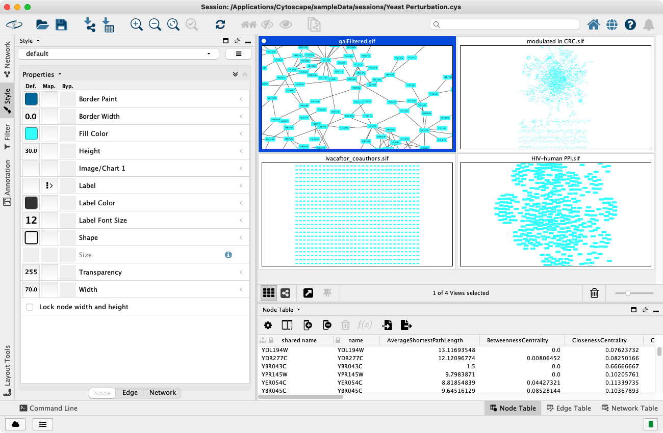 Cytoscape 允许一次加载多个网络,无论有无视图。一个网络存储了加载的所有节点和边,并在一个视图中显示它们。