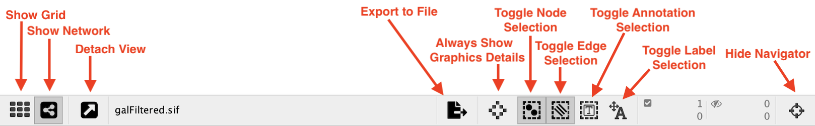 - 用于显示网络的主网络视图窗口。网络视图的底部是一组网络视图工具。